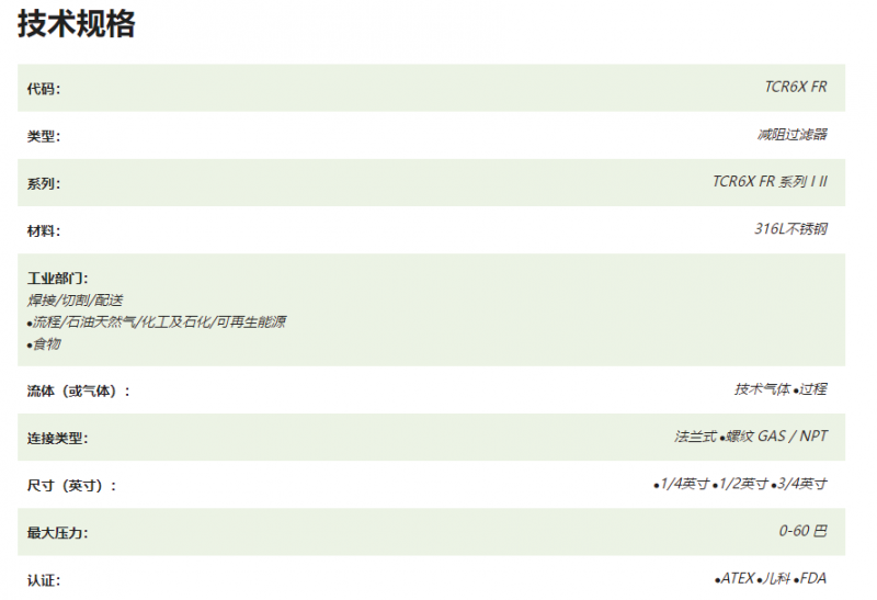 TECNOCRYO 减阻过滤器TCR6X FR系列