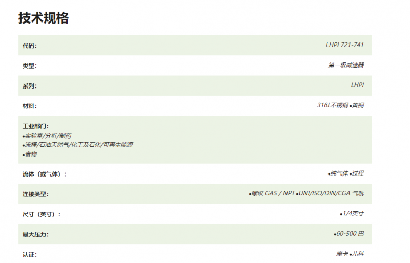 TECNOCRYO 压力调节器LHPI 721-741系列